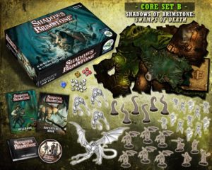 This is Shadows of Brimstone. It’s a cooperative dungeon (or in this case mine) crawl game that is set in the weird west. You can take one of four archetypal roles from the Wild West and you form a band that heads down into the mines to try and keep the darkness and the monsters from escaping. I’d describe this game as D&D lite. There’s still plenty of dice chucking to be done, and you have a chance of facing off against monsters in every room of the mine, but you don’t need a dungeon master to tell the story. In fact, you don’t even have to use one of the adventures that the game comes with, you could simply go down into the mine and battle, or you could play it as a campaign and keep your characters from game to game. Shadows of Brimstone has a great look and theme to it where what you do does seem to fit into the game not that the theme was put around what you are doing.